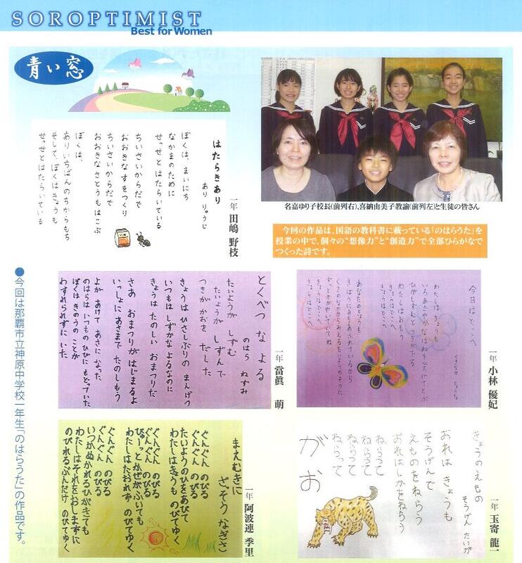 国際ソロプチミスト沖縄が発行した記事の内容です。国際ソロプチミストは,管理職,専門職に就いている女性の世界的な組織で,人権と女性の地位を高める奉仕活動をしています。