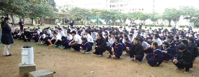 去る12月2日(金)に,地震発生後の運動場への避難,その後の大津波警報発令を受けて,中央公園への避難訓練を行いました。関連記事→