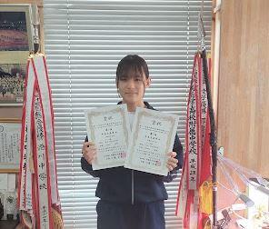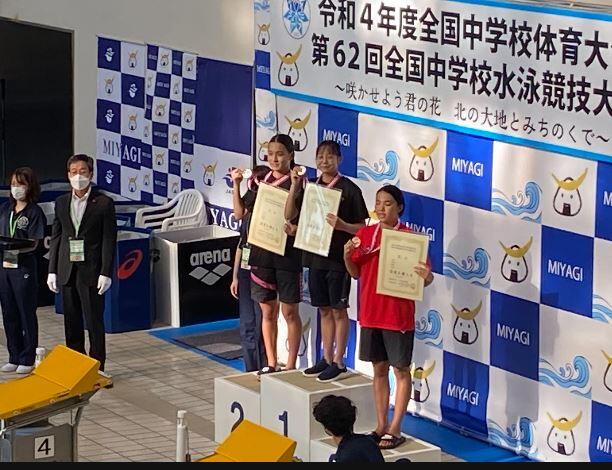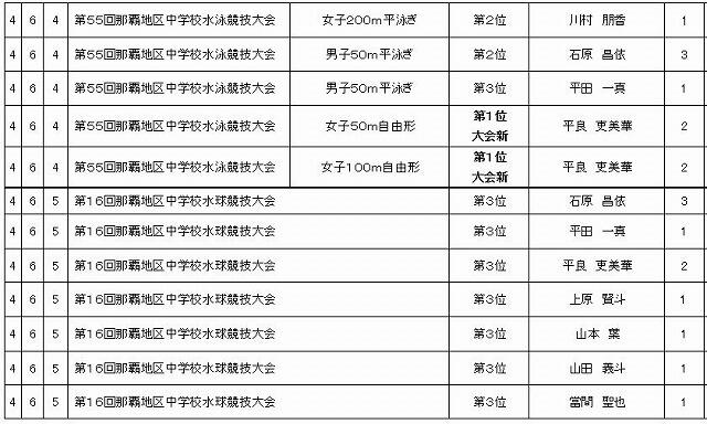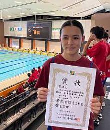 2年平良さん コナミオープン全国2位 中学50・100自 県新