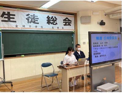 金城中学校の課題として、①時間を守る。②進んであいさつ。③進んで発表の3つの課題が示されましたが、各種専門委員会や部活動のキャプテン会より、課題解決にむけた様々な提案もだされ、大変頼もしく思いました。