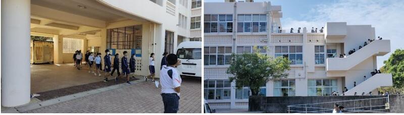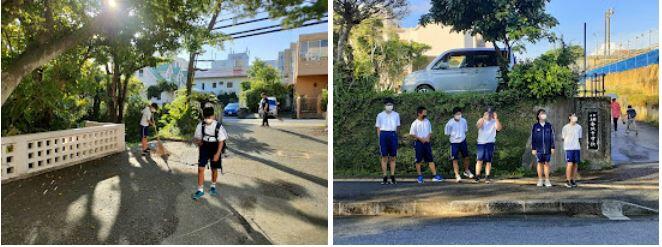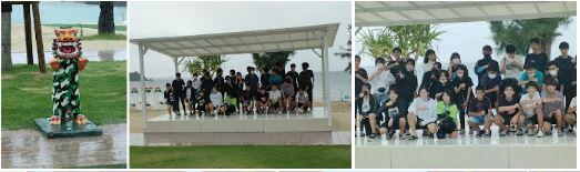 二年生の頃からずっと延期を繰り返してきた修学旅行。一泊二日という短い期間ですが、私達の願いが叶いやっと実現することができました。一日目はバスでの移動が多く、その中で行われたレクではクラスの中を深めることができました。海洋博公園では、皆で弁当を食べ、美ら海水族館の見学、琉球村では貸し切りでエイサーショウを見学したり沖縄の伝統に触れることができました。ホテルは豪華で各部屋でゆったりと過ごし、豪華な食事にみんな満足でした。二日目は、悪天候でマリン体験が一つしか出来ませんでしたが、グラスボートから見たきれいな海と魚にみんな歓声をあげ、とても楽しかったです。最後の御菓子御殿の昼食も、海の見える場所でゆっくりと楽しく食べることができました。