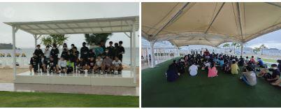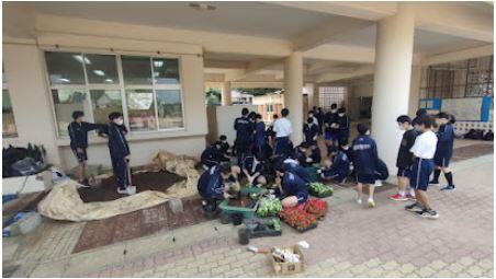 4月28日の木曜日に、私達三年生は金中で初めての遠足に行きました。28日は、雨の予報でしたが、当日は天気に恵まれむしろ暑くて大変でした。遠足では、波の上ビーチでドッチボールや五色綱引きをしました。各学級で協力し合い、勝っても負けてもとっても楽しいレクでした。そしてその後、エスパーナでバーベキューをして、お肉やハンバーグ、ソーセージなどを食べておいしかったけど、とってもお腹一杯になりました。