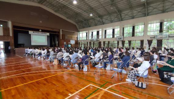 生徒総会翌日には、進んであいさつする生徒が増え、奨励している8時8分登校にも改善がみられました。その様子に感動した生徒指導主事の砂邊先生より、「自分たちの課題を自分たちで解決する素晴らしい学校です」と、全校生徒に向けての放送も行われました。