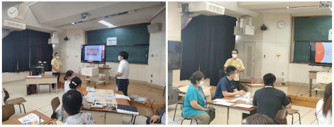 当日は、美味しい給食をいただきながら、那覇市立小禄学校給食センターの栄養士の方をむかえ、食育や栄養に関するお話しをしていただきました。