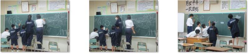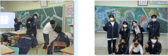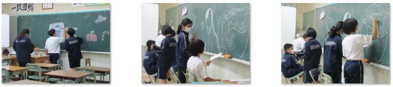 ・黒板アート大会を企画する中で、できるだけ長く作品を残す方法はないか、本当に全クラス参加してくれるかなどの課題も多く、新しい行事を計画する難しさがよくわかりました。それでも生徒会役員で意見を出し合ったり、先生方の提案をうけたりしながら、妥協した点もありましたがねらいに沿った企画ができました。実際に黒板アート大会を行うと、参加してくれた生徒の正直な意見も聞けて改善すべき点がたくさんできて、まだまだ考えたりない所に気がつくことができました。自分にとって、新しい経験ができたので、今後の活動に生かしていきます。