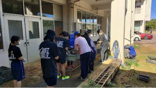 声かけをすると50名近くの生徒が、駅伝をしたいと集まってくれました。朝練&放課後の練習を通して、徐々にチームとしてもまとまってきました。今回、離島開催なので、たくさんの中から選抜されたメンバーのみの参加となりましたが、最後の練習もみんなでやることができました。選抜されたメンバーも他のメンバーの思いも「襷」にたくし、大会に臨んでいました。その結果、「男子7位・女子5位」という素晴らしい結果につながりました。また、その中でも女子2区の重松那奈海さんが区間1位、4区の島尻美月さんが区間3位と区間賞を頂きました。最後のミーティングでも先輩から後輩へ今後の「襷」もつないでいたので、これからも日々の練習に頑張って必ず次に活かしてくれると信じています。
