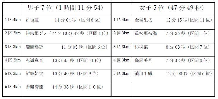 チーム金城「襷」をつなぎ『男子7位・女子5位』