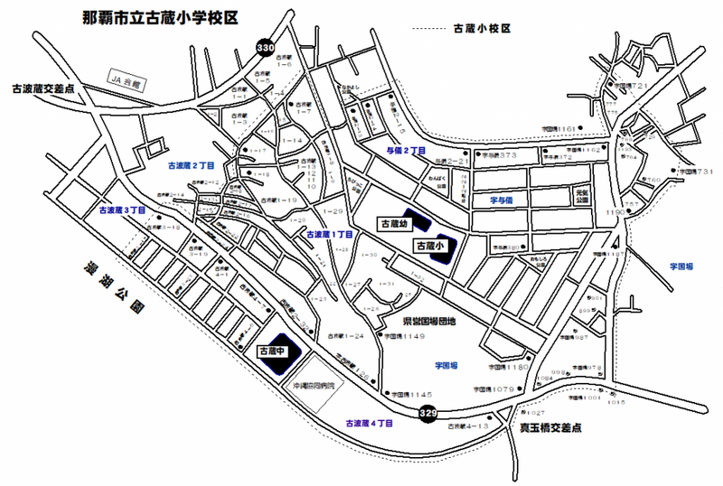 昭和51年1月10日の古蔵小学校設置条例が公布され同日学校長も発令され開校準備が進められた。しかしながら,分離はしたものの整地が間に合わず始業式は与儀小学校で行われ,授業も4月中は間借りのままで行われた。5月1日現在地の新校舎に移転した。
