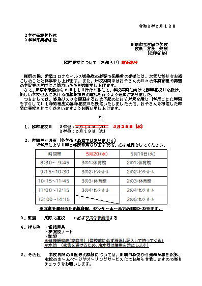 働省、県教育委員会等の方針により随時、変更の可能性もあり得る旨、御承知おきく