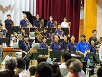 城岳小学校金管バンド部、ウィンドオーケストラオリオン、本校合唱部がゲスト出演して下さいました。第3部では、本校吹奏楽部の他、吹奏楽部OBOGやウィンドオーケストラオリオン、合唱部による合同演奏を行いました。