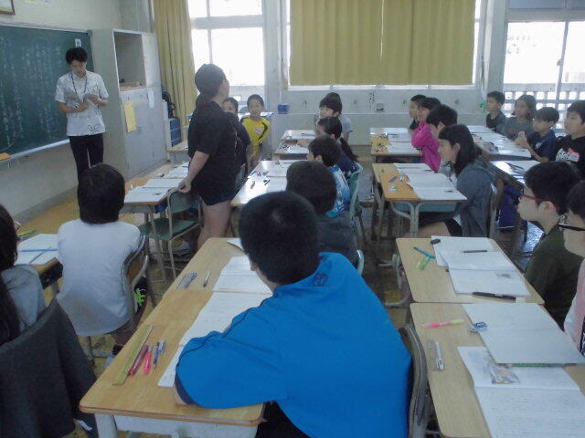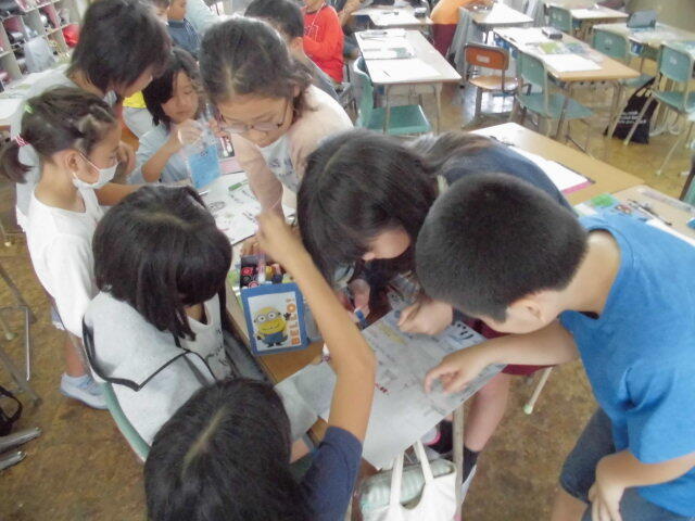 5年生の係活動の時間の様子です。先生のアドバイスを受けながら、子ども達自身が活動計画とポスターを作成し、報告会を行っていました。