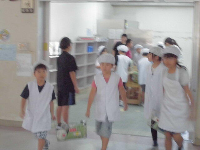 今日一クラスだけ時間がたっても当番が来ません。給食委員のみなさんがその教室に運んでとどけてくれました。