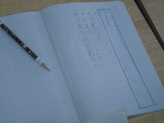 それでも、教室の子ども達のノートを見るとほぼ全員が定規を使ってきれいに青い枠線でかこんでいました。ほめてあげたいものです、2年生のノートの使い。