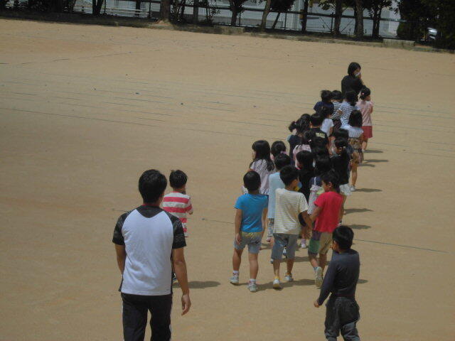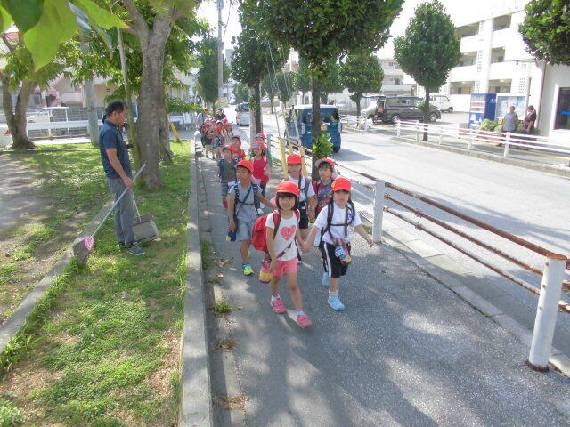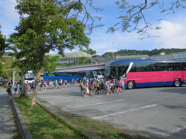各学年列をつくって、那覇市体育館駐車場まで移動しました。