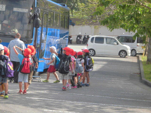 春の遠足。天気もよくて絶好の遠足日和。子ども達はワクワクして、希望を抱いてバスに乗ります、どの子も笑顔、笑顔、笑顔でした。