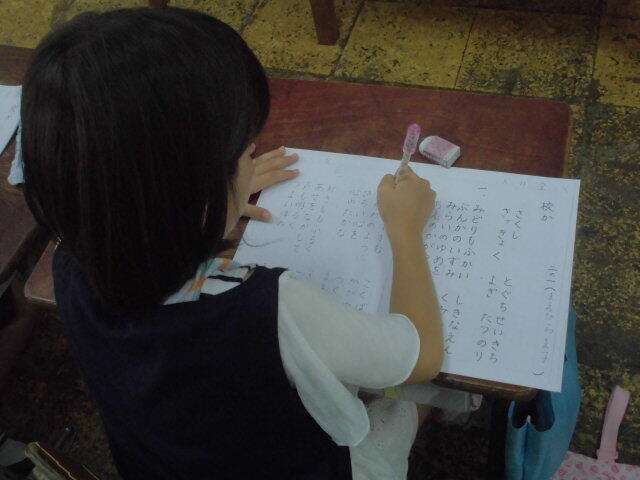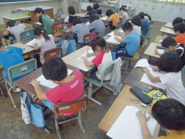 2年生がまっすぐな線を引くを意識しながら文字を書いていました。とても集中して最後までていねいに文字を書いていました。