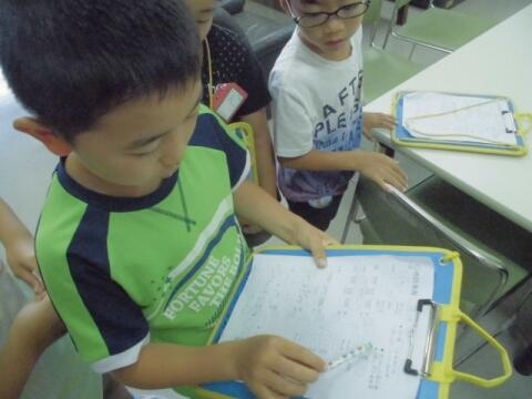 「勉強大好き」1年生。はじめての発表会で、おそわったお勉強を見事に表現して伝えることができました。こんなふうにやったら勉強って楽しいですね。