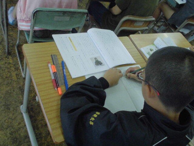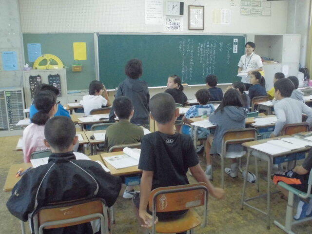 まず、2年生の国語の授業で感心したことです。ノートの使い方でめあてをしっかりと青で囲んでいました。これは先生のおはなしをしっかり聞いているということです。本校ではノートの使い方のきまりにめあては青で、まとめは赤で囲みましょうというのがあります。基本的なことですが、定着するにはなかなか時間のかかることです。