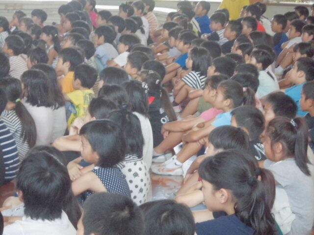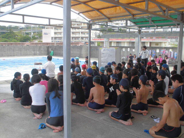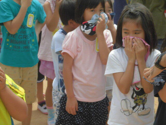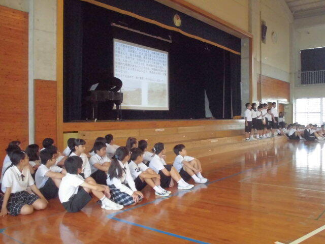 から、真和志高校に全員が避難した時刻は11:15。およそ20分で皆安全に非難する ことができました。集会ではどの子も真剣にお話を聞いていました。