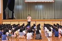 また、①ろうかで走ってぶつかった場合の衝撃は6階建て建物の屋上から落下したときの衝撃とおなじである、②西門など学校では通ってはいけない、入ってはいけない危険場所がある、③まずは室内を走らない、歩くことから始めようなどのお話がありました。