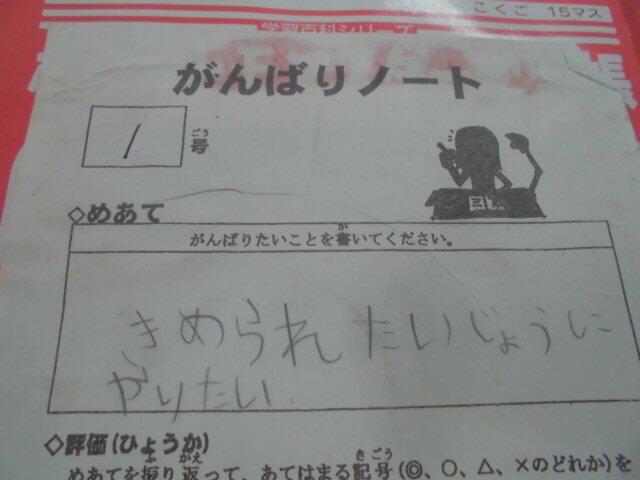 がんばって ともだち100にんつくってください。100てんもとってくださいそしてゆめ・きぼう100ぱーせんとでいてください。