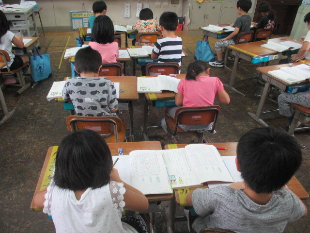 みんな一点に集中するかのごとく、静かに書く活動に取り組んでいました。すごいですね、真地小学校の一年生。