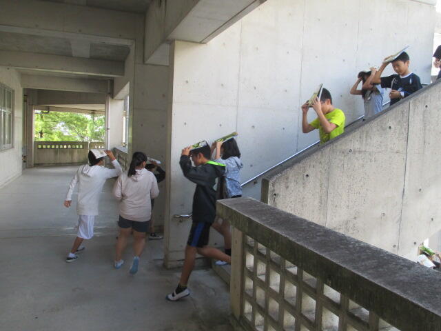 運動場に全員無事に避難できました。教室に戻り、ひとりひとり訓練をふりかえり評価をしました。