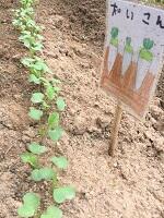 真地小の学級園では、大豆・ブロッコリー・大根・じゃがいも・サンチュ・ハーブなど色々な野菜を育てています。