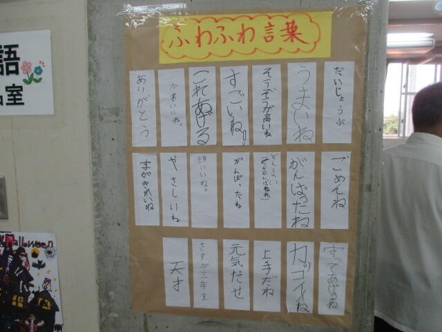 また、参観者は子どもたちの可能性や良さを伸ばす取組に目がいきました。ふわふわことばの掲示、楽しそうに授業する先生、付箋紙に書かれた長所、作品に書かれたうれしいコメント、そしてやる気がでるような学級掲示等。