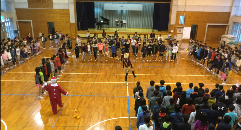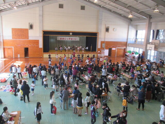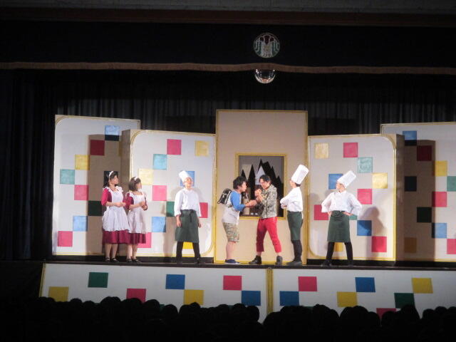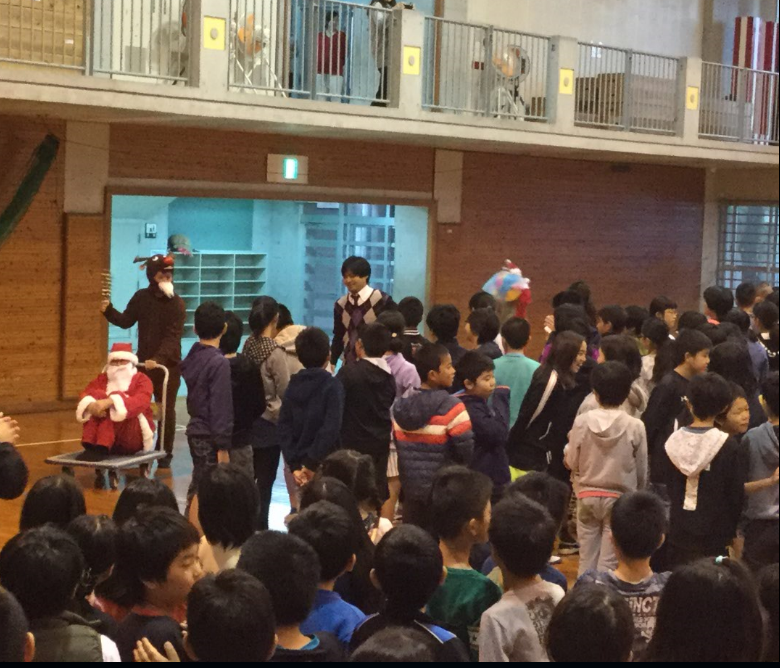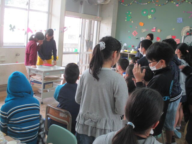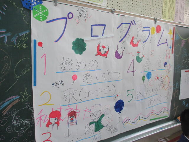 教室がパーティー用に装飾され、お楽しみ会のようにいろいろな出し物がありました。
