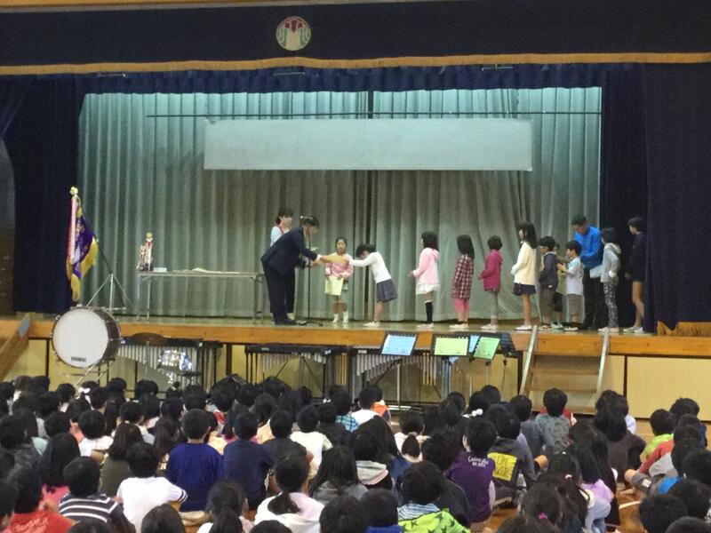 成果をあげ、活躍した子供たちには、賞状があたえられます。今朝の表彰朝会では、童話お話大会、キンボールで頑張って、優秀な成績をおさめた真地っ子たちが表彰されました。
