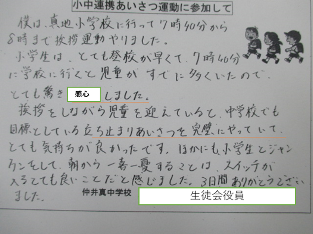 それは他校から着任した先生方の感想にもありました。特に教頭先生は高学年児童の返事のことばがはっきり返してくれるのにはびっくりしたとおっしゃていました。