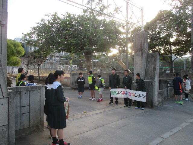 ①のあいさつについては「あいさつ勝負」の言葉を唱え、立ち止まりあいさつや礼などの作法をあらゆる場所で継続してやっていきます。