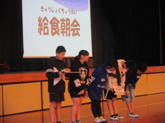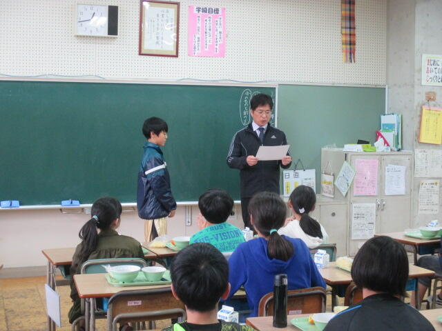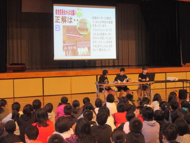 6年生の給食委員の子ども達が準備、配膳等を行いました。