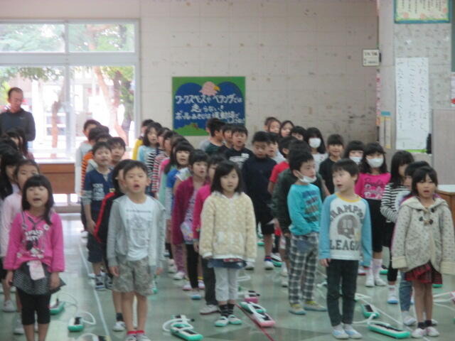 今日は火についてのお話でしたが、それだけにとどまらずきまりやルールを守る規則尊重の学習でもありました、それは道徳の時間と同じです。子どもたちは今日の朝会でどんなことを心にえがいたのでしょうか、そしてどんなことを書いたのでしょう。お家できいてみてください。