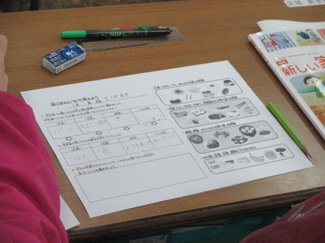 お家の人に、今日のはじめての給食についてどんなお話をするのでしょうか。