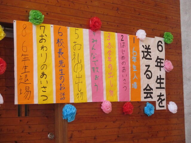 6年生が各学年を通っていきます。みんなでおめでとうやありがとうの声をかけて卒業生を見送りました。