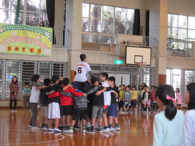 今日は卒業式に参加できない在校生たちとのお別れ式がありました。