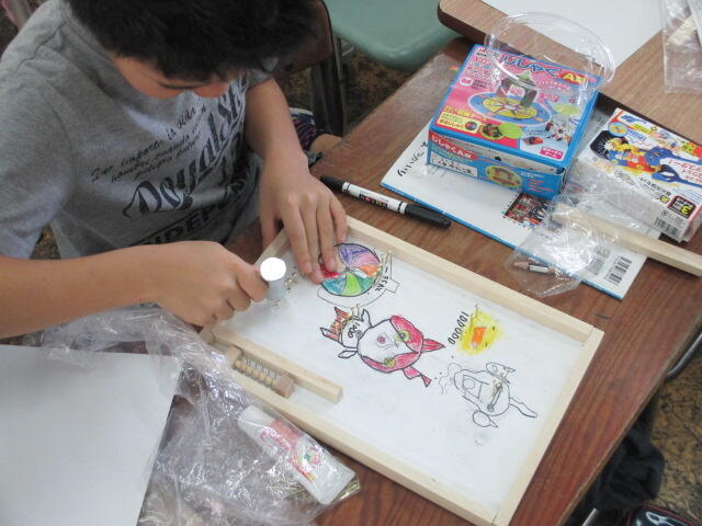 わからなければ、お友達の作品を見たり、先生に聞いたりして工作をすすめていました。何ができたのでしょうか5年生。
