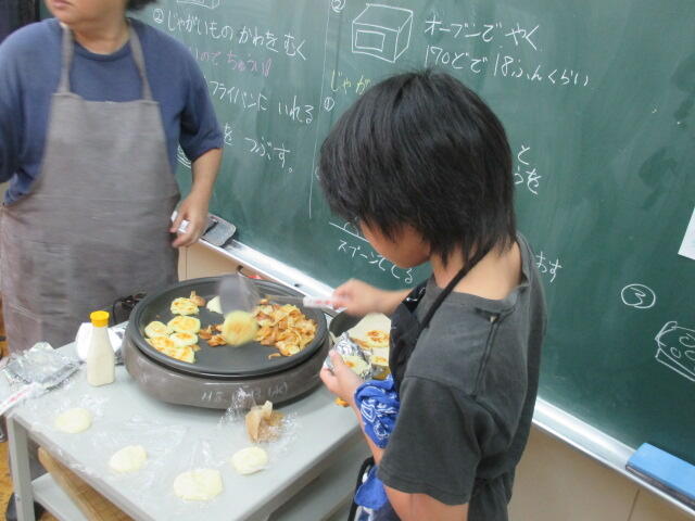 畑で育てたジャガイモなどの野菜を使っての調理です。