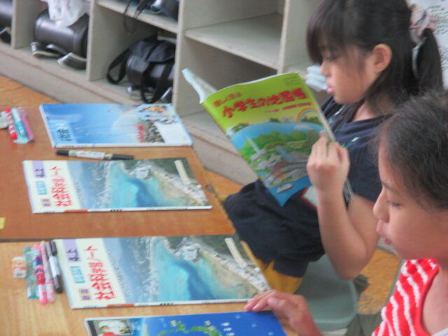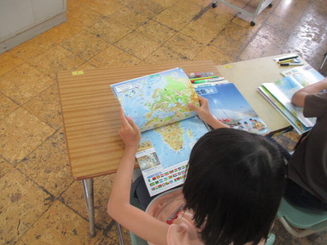 生涯で初めて地図帳に出会う瞬間の4年生の表情がたまりません。オーという歓声が上がりまし。地図を指して国名を言ったり、ぱらぱらとページをめくったりしていました。まさにおとうさんおかあさんにみせたいくらいの場面でした。