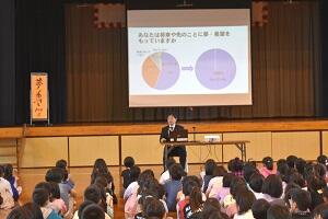 校長先生からは、「真地っ子は将来の夢や目標を持っていると答えた子の割合が全国的にも高い学校です。これは学校だけではなく地域の皆様方の支えがあってこその成果だと思います」というおはなしがありました。