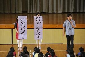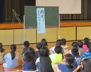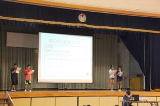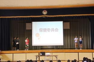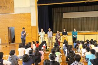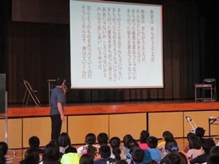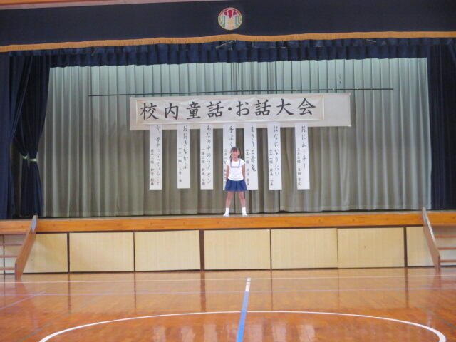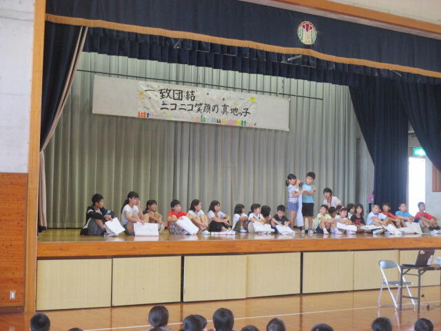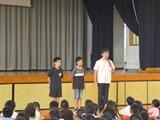 発表では童話お話意見発表大会で学校代表に選ばれた3名の児童の発表がありました。みんなとても上手でした。10月の真和志南ブロック大会では頑張ってくださいとみんなで拍手のエールをおくりました。