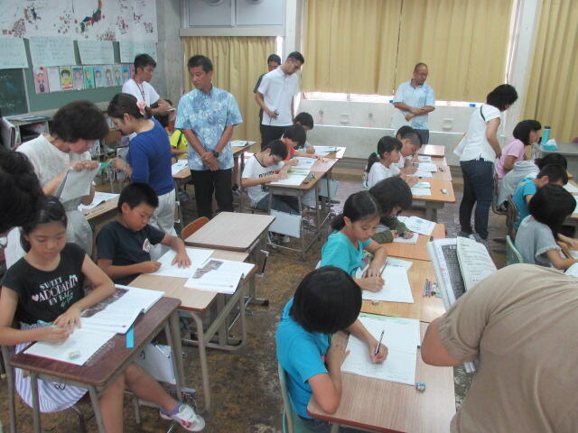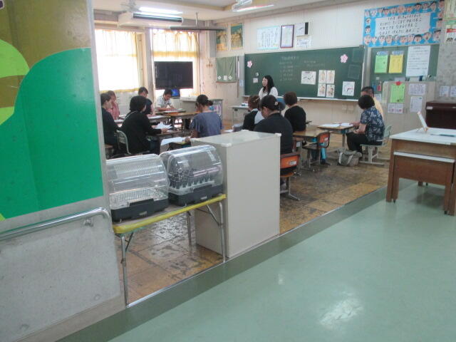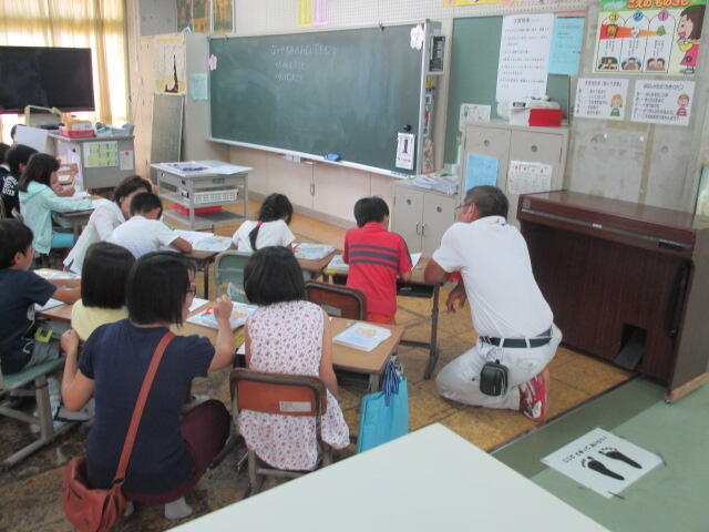 授業参観では国語、算数等の教科、そして道徳や歯磨き指導等が公開されました。子どもの作品やノート、掲示物等に目を通し、はげましのことばをかける保護者もいました。また、お孫さんの様子をご覧になって笑顔になる方もいしゃいました。