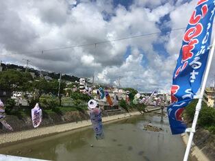 国場川のこいのぼりまつりは今年で21回目を迎えます。その功績が認められ,国交省から