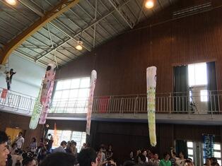 館内でこいのぼりの掲揚式があり,いろんな出し物があり,素朴でとても楽しい会でした。