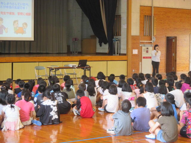 講師の先生の話を子ども達は水を打ったようなシーーンという静けさの中で聞いていました。 いじめと万引きの未然防止について学級では,お話をふり返り、大切なことを繰り返し指導を行いました。