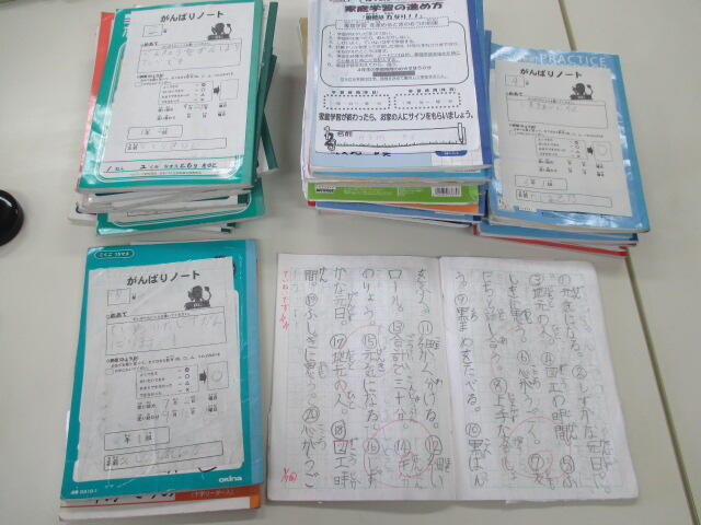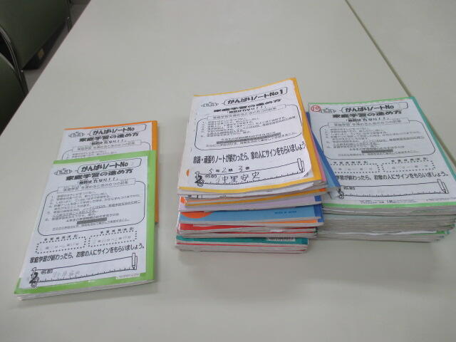 今回も多くのがんばりノートが届けられていました。中身を見ると家庭学習のきまりを守りノートを仕上げている子が多かったです。