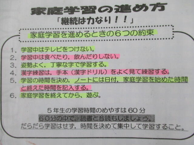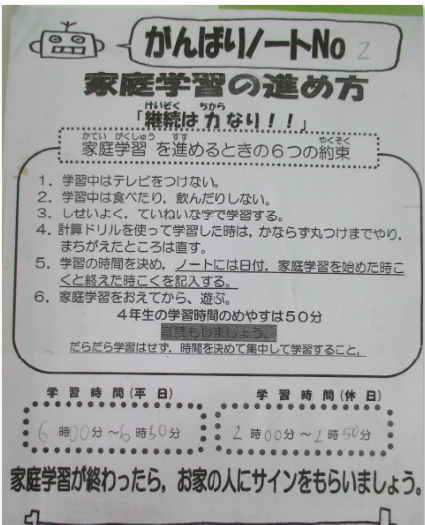 本校ではその目標を達成するため家庭学習の習慣化を図る取組を行っています。