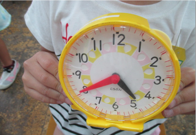 しかし別の答えを持っている子は30分前は長い針が30分前に進むから4時40分、30分あとは長い針が30分後ろにもどるから午後3時40分と説明してくれました。前だから前に進む、あとだから後ろに戻る。なるほどと思いました。